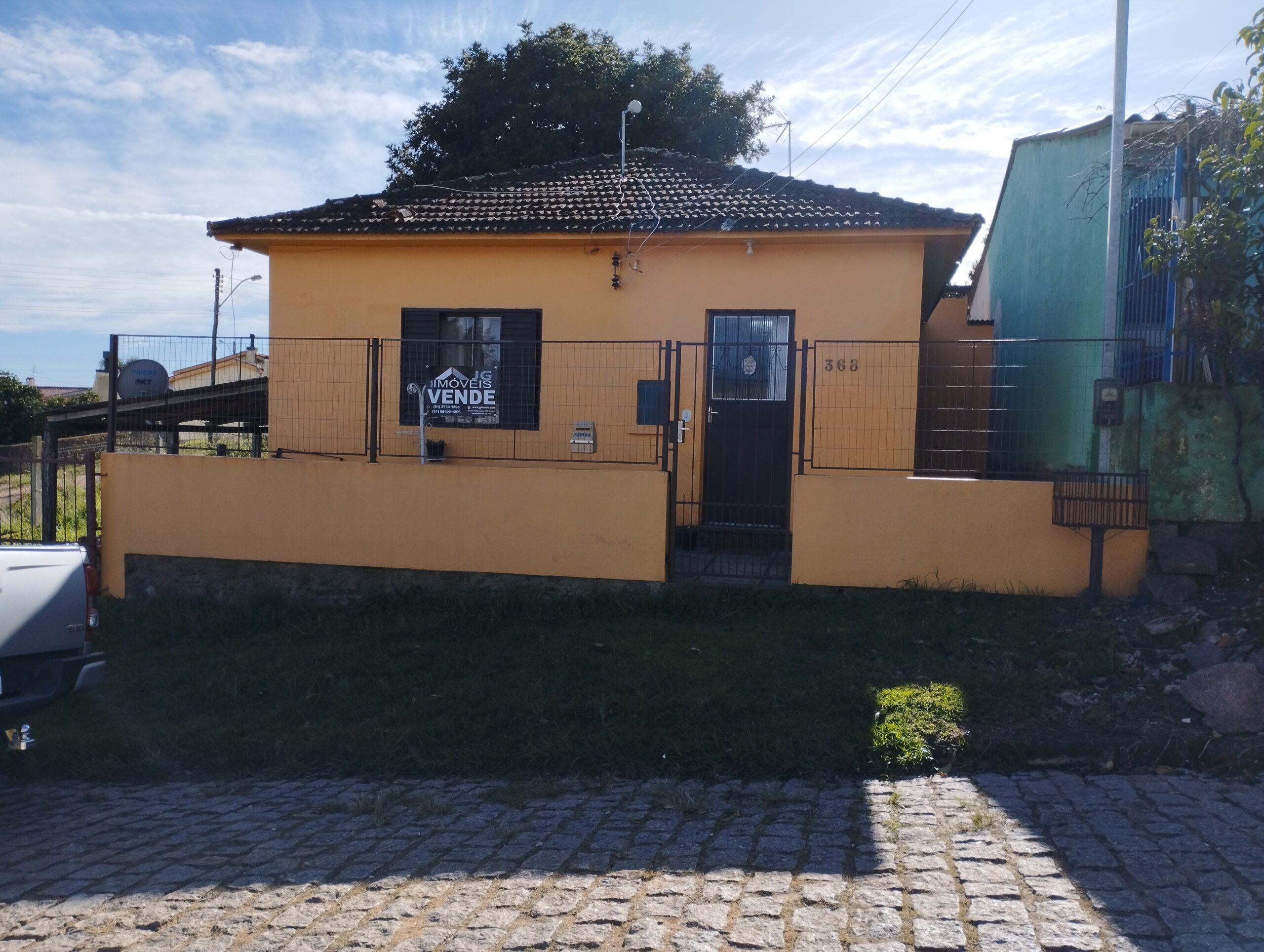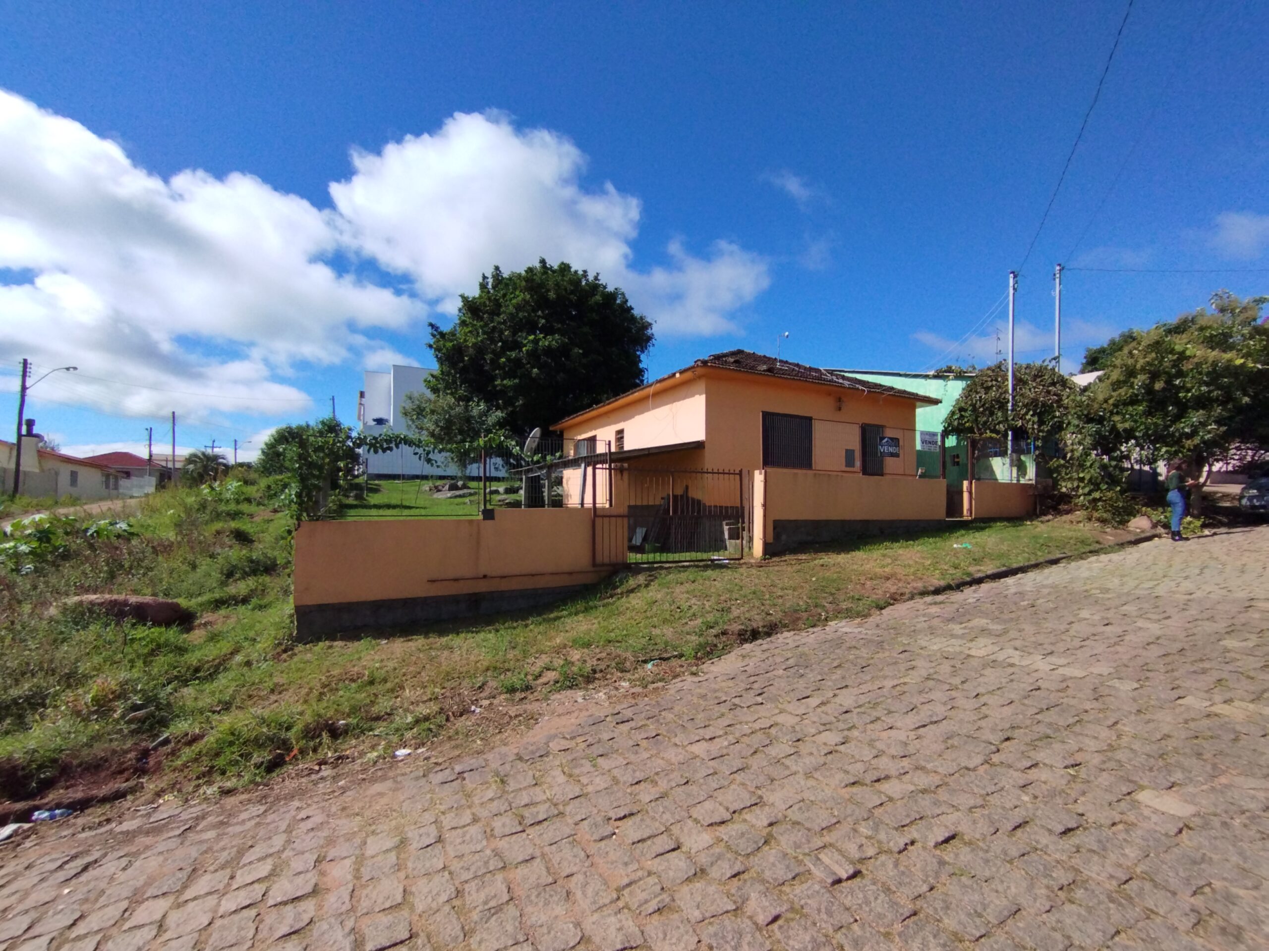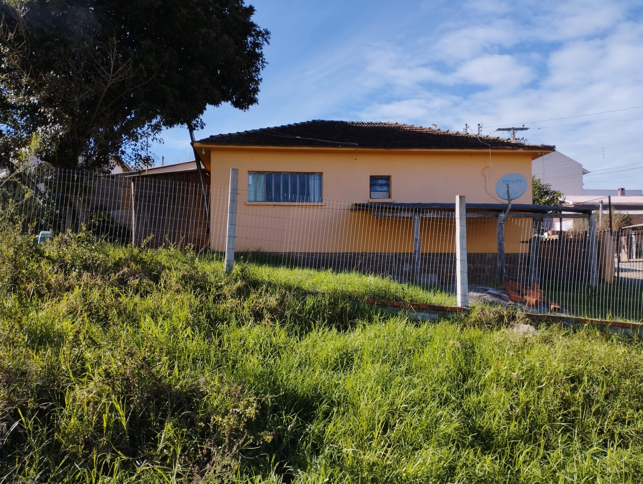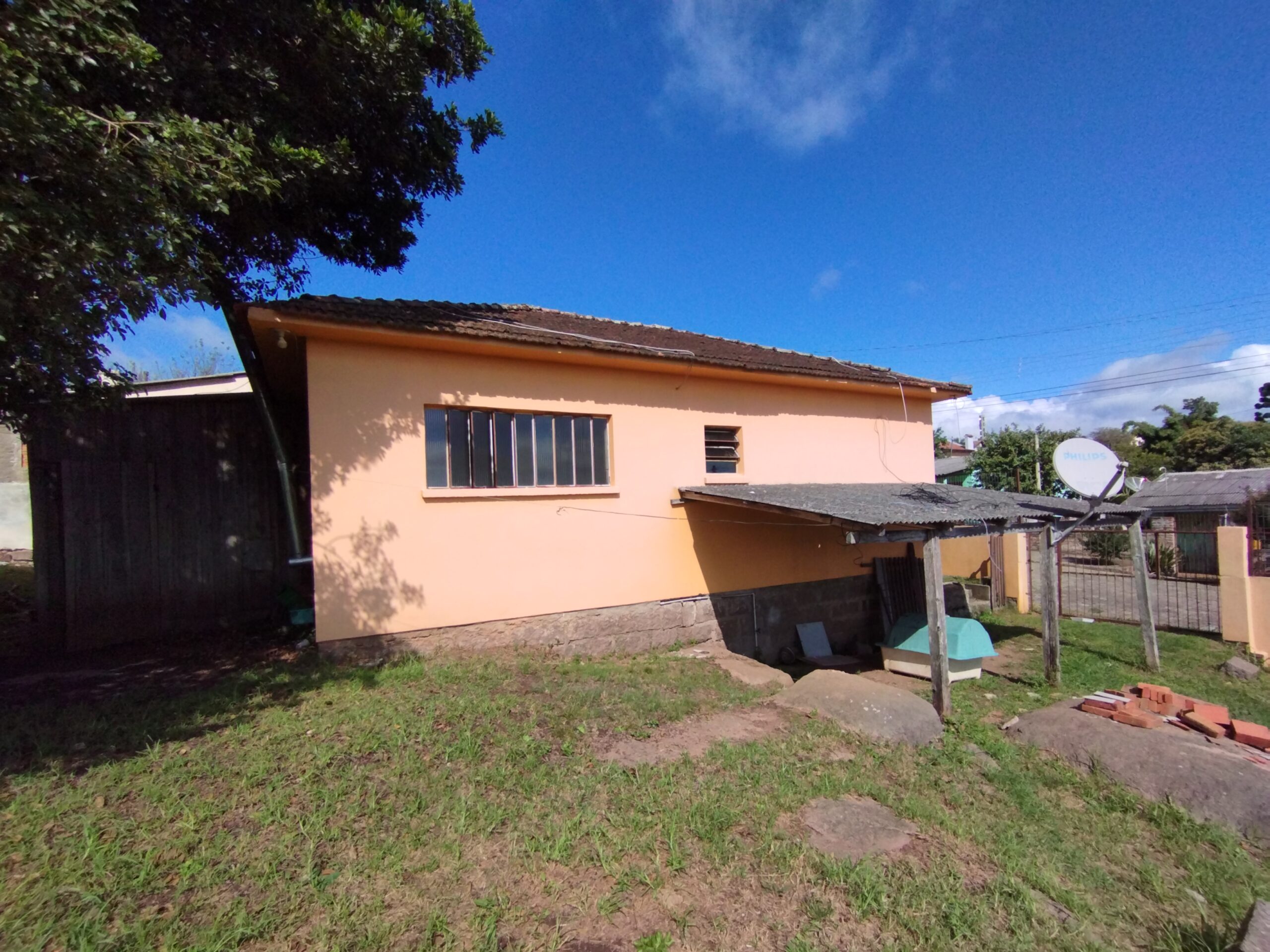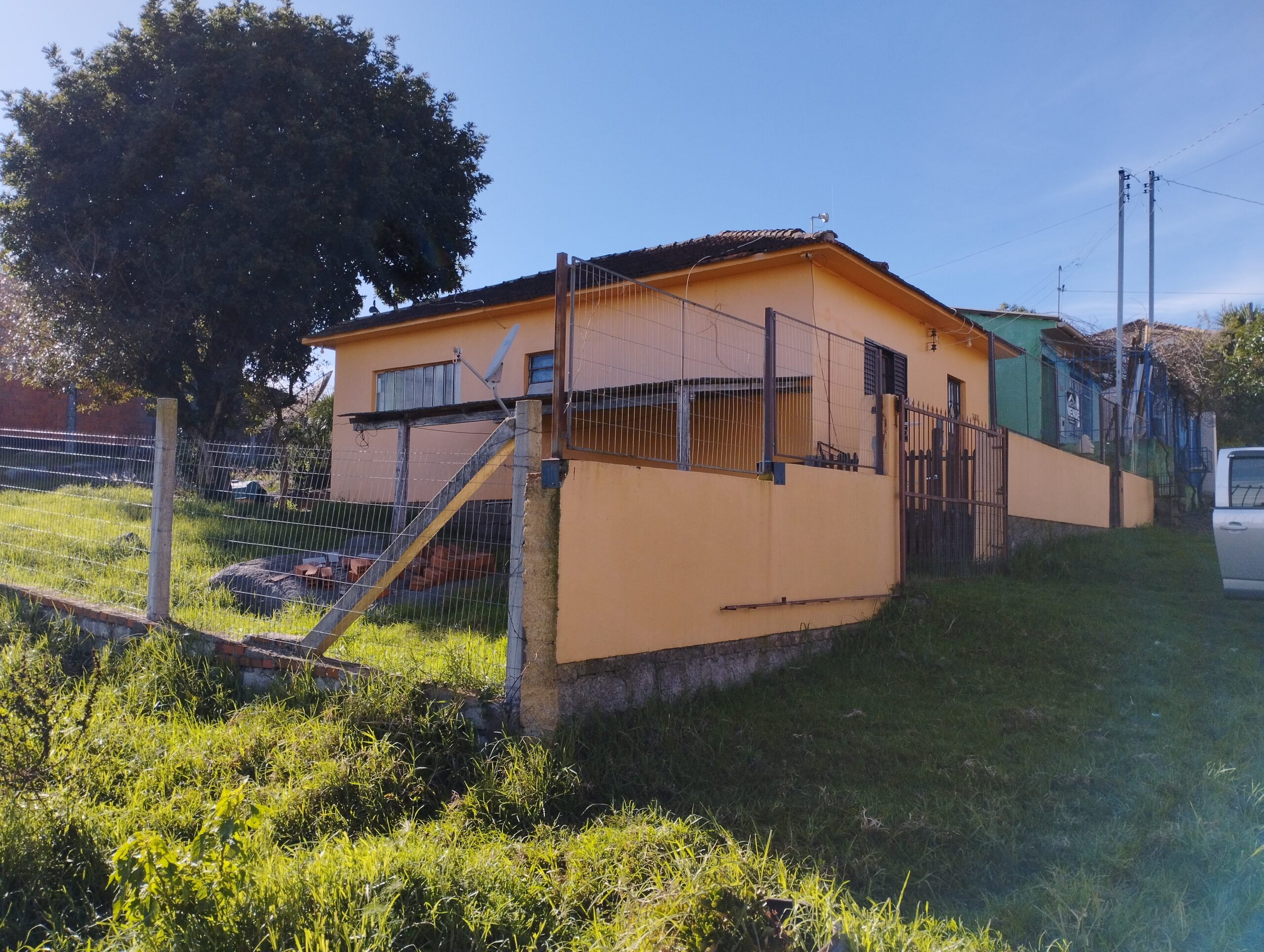 🟢Casa de alvenaria, com 56 metros quadrados de área construída e 450 metros quadrados de terreno, este de esquina.