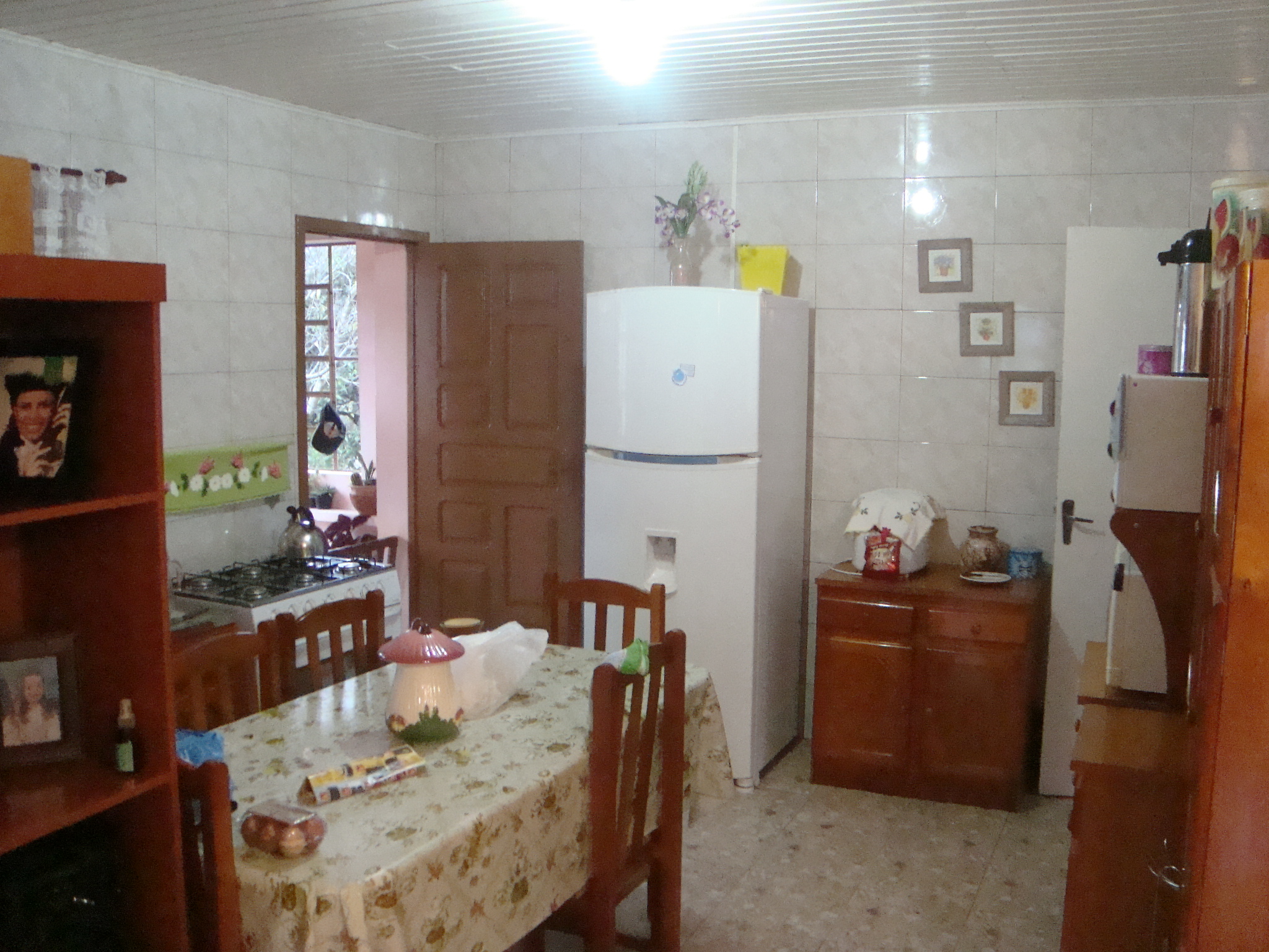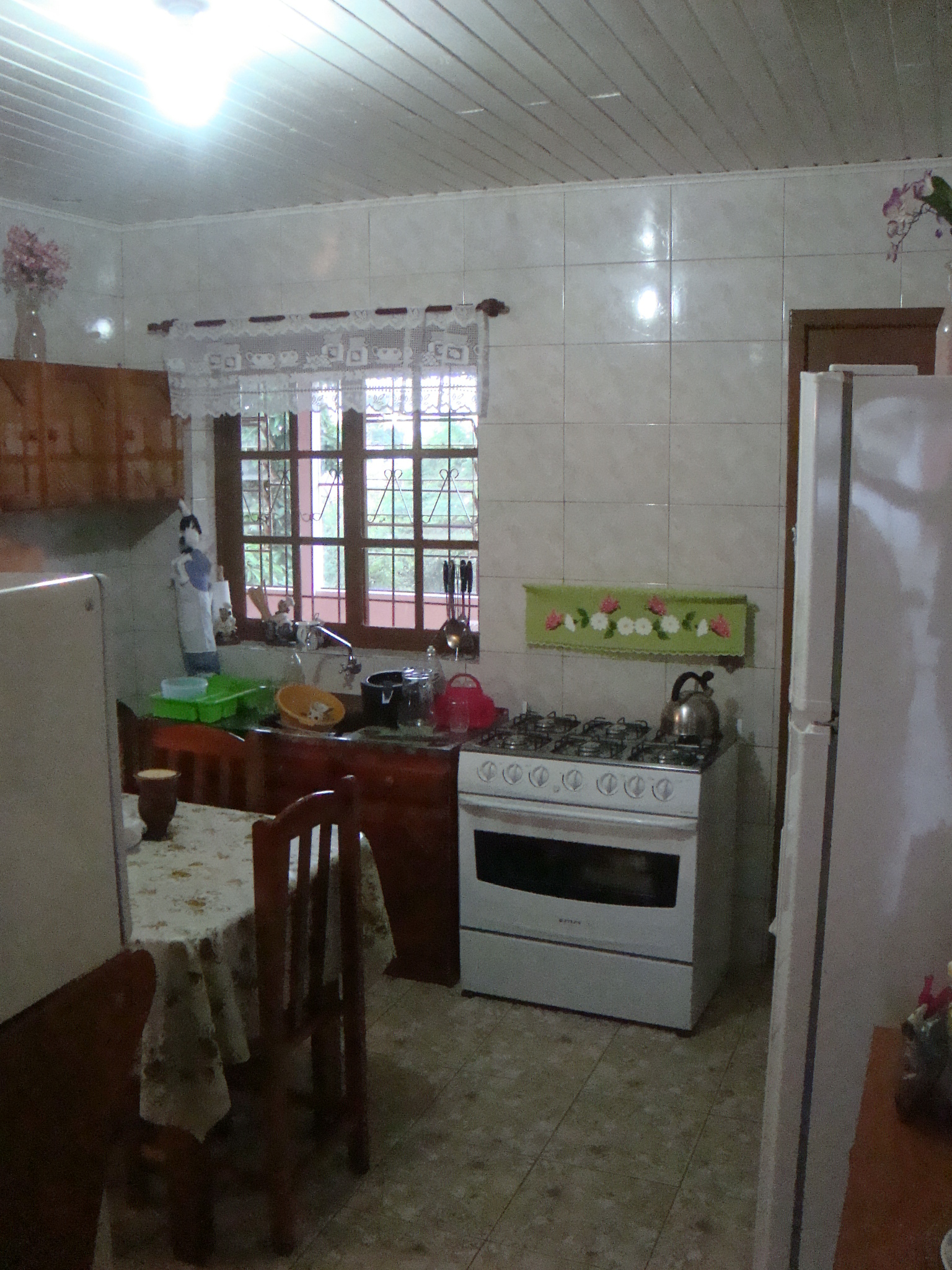 Cozinha com azulejos até o teto;